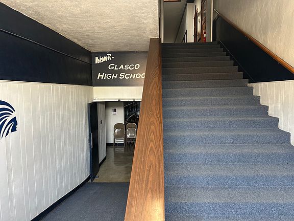 Another rare opportunity of owning some of Glasco, Kansas’s history is this two story building that was built in 1921 and is 10,980 sq ft. It features an auditorium/gymnasium with a stage area, 12 classrooms, bathrooms, a library, office spaces, and various other rooms.